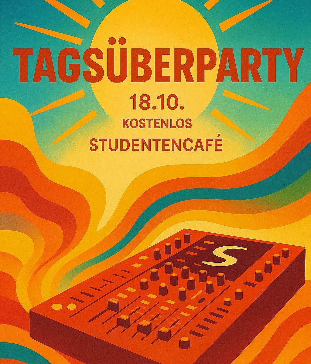 Feiern, tanzen & trotzdem früh ins Bett? Genau das geht am 18.10. ab 13 Uhr im Studentencafé – kostenlos! 🌿🎶