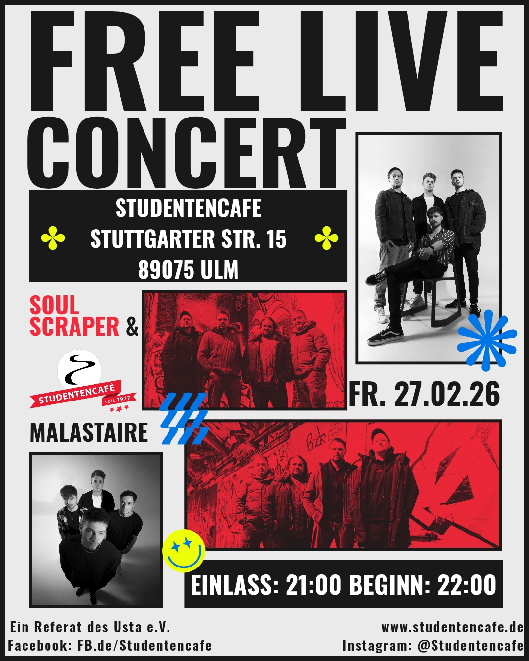 Bock auf einen entspannten Abend mit Live-Musik? Oder sogar selber Teil der Live-Musik zu sein? Dann komm vorbei zu unserem Mittwochs Jam! Jeden Mittwoch im Studentencafé ab 21 Uhr. Eintritt frei! Wir haben schon einiges für euch da: Schlagzeug, Gitarre, Bass, Keyboard und Mikrofone stehen bereit. 🎹🥁🎸 Wer noch ein besonderes Instrument mitbringen will – …