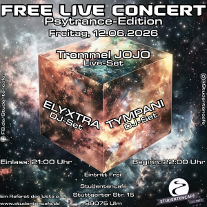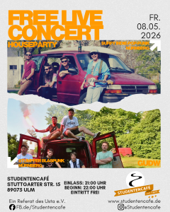 Jeden zweiten und vierten Freitag im Monat gibt es bei uns im Studentencafé kostenlose Konzerte. Eine Übersicht über die kommenden Konzerte findet ihr hier: